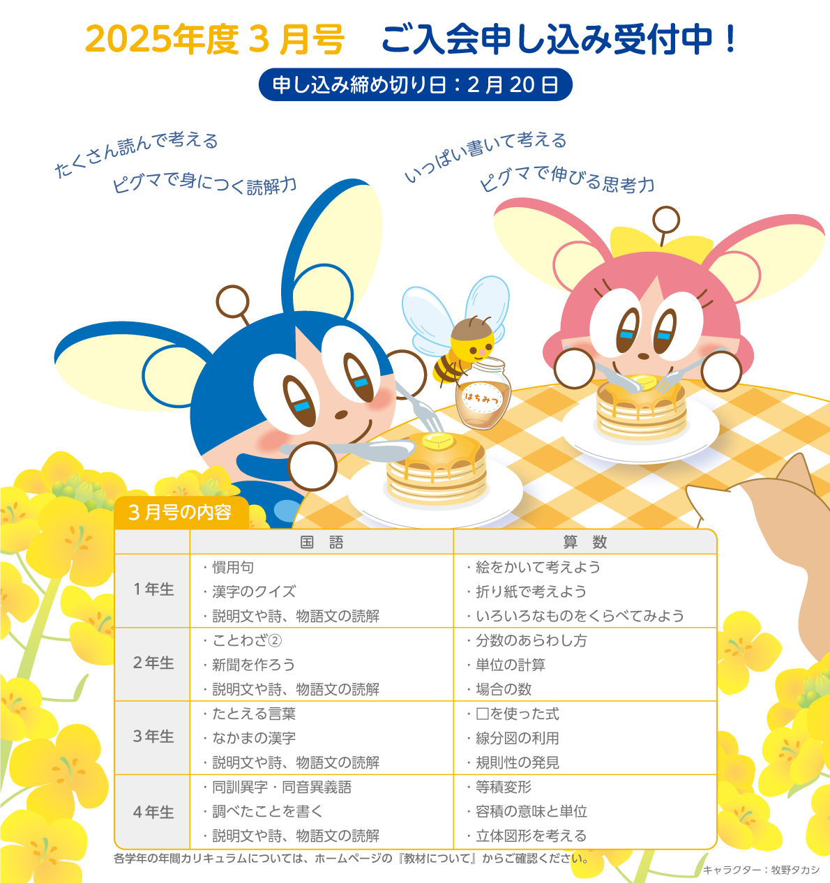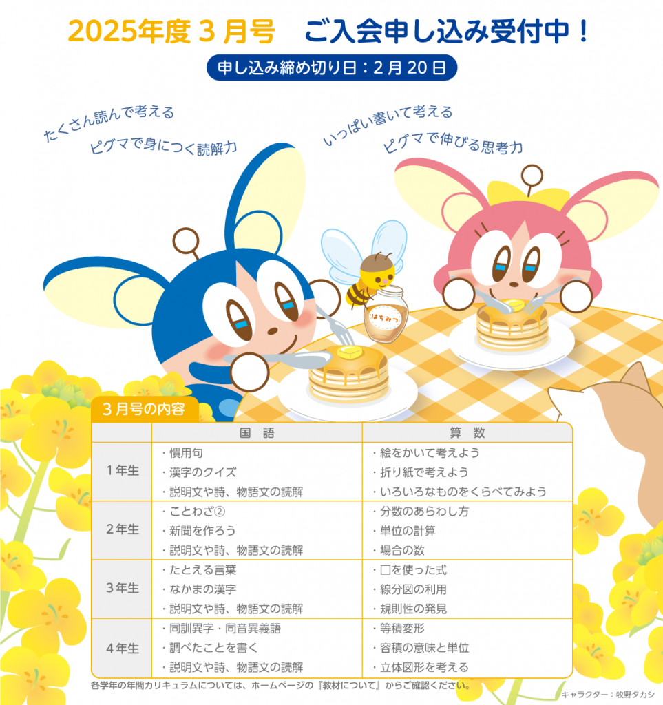 2025年度3月号入会申し込み受付中!&2月ピグマカレンダー 2026/1/21 ピグマカレンダー2月も公開中! プリンターの設定でB5判やA3判など、いろいろな大きさに印刷できます。 ぜひご利用ください。 (キャラクターデザイン)牧野タカシ